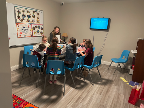 Nursery and the preschool Sunday School are held in each of their own rooms. During the hour they will have structured playtime, music, and a Bible Story.